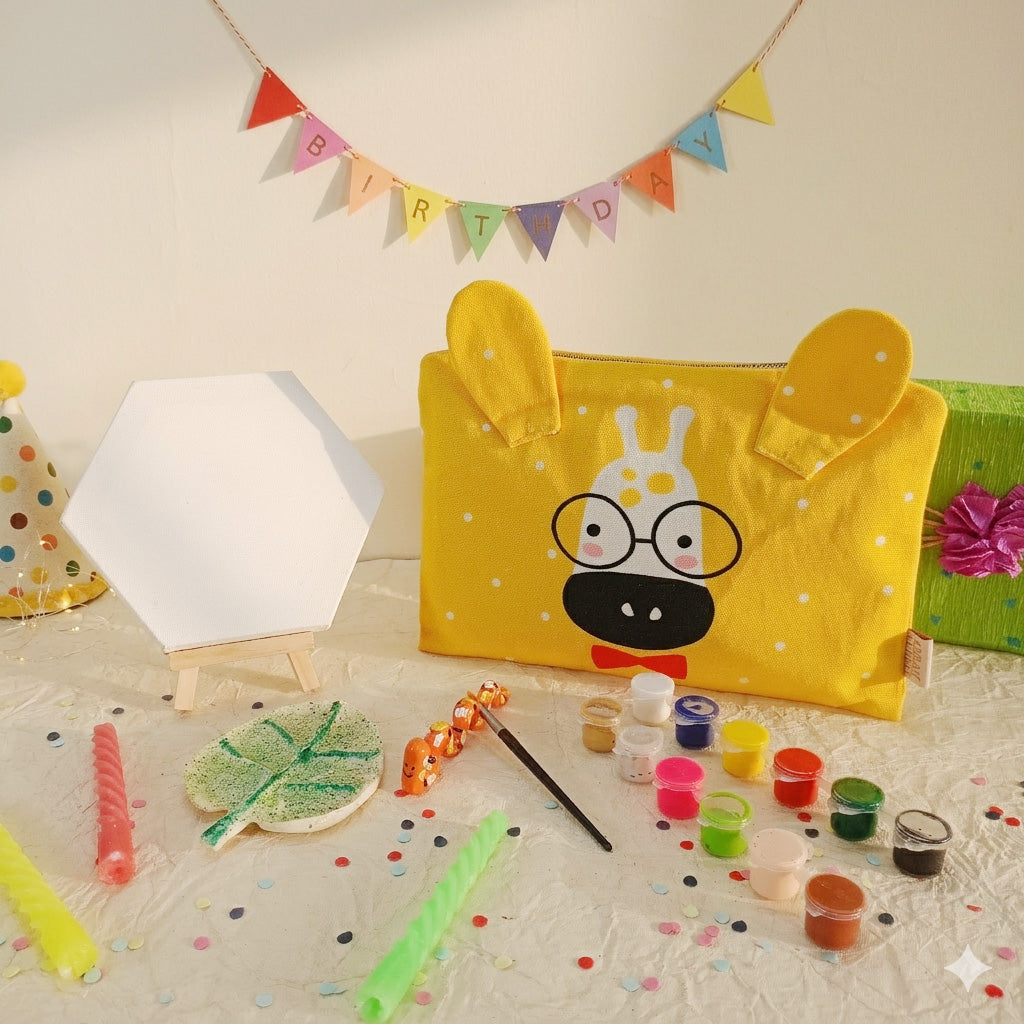 A playful blend of art and nature, the NATURE'S NEST Birthday Gift Hamper turns birthdays into a hands-on painting adventure. Thoughtfully curated with whimsical, nature inspired elements, this hamper invites little artists to explore color, imagination, and creative play in the most delightful way.